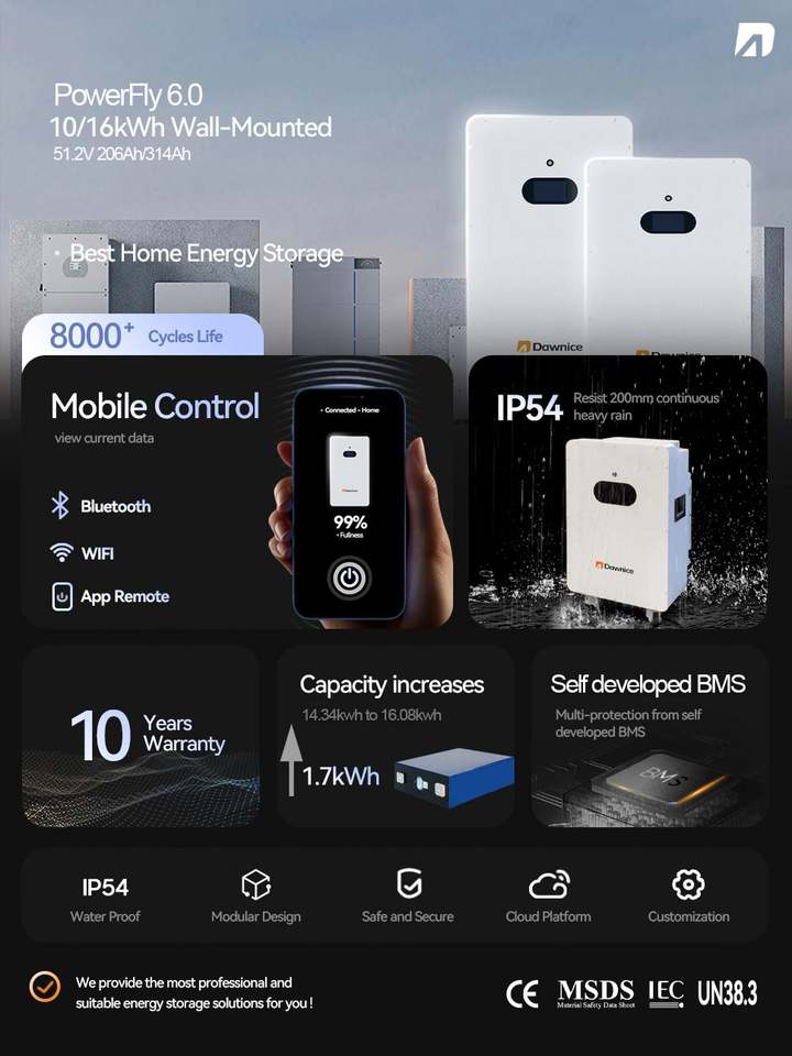 Type:Split, 16kwh Power Wall Mounted Lithium Ion Battery