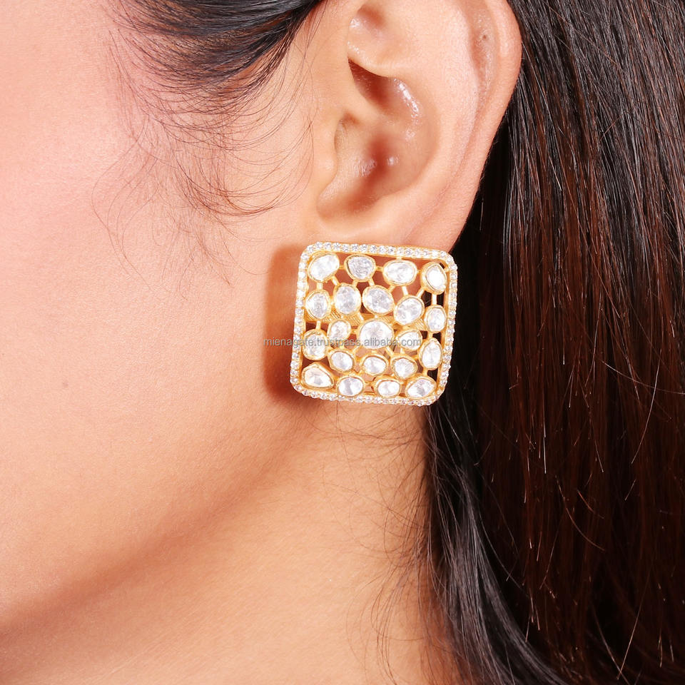 Product name:925 Sterling silver Moissanite Polki Earrings