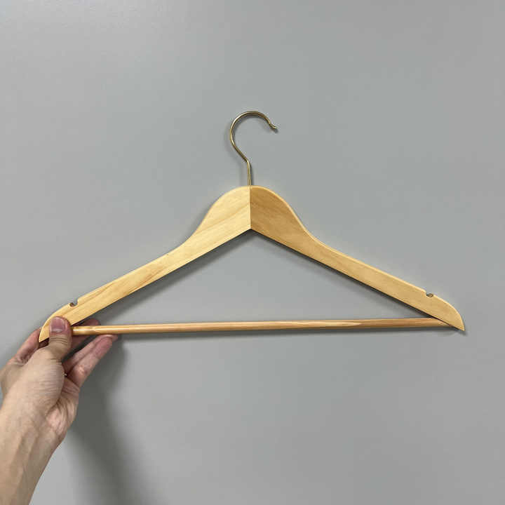 Best Selling Premium Pine Wood Hangers Custom Hyacinth Logo Standard Size Wooden Clothes Hanger Wholesale from Vietnam