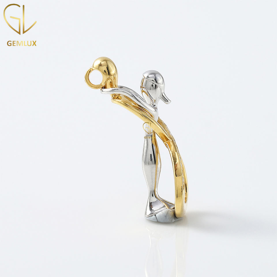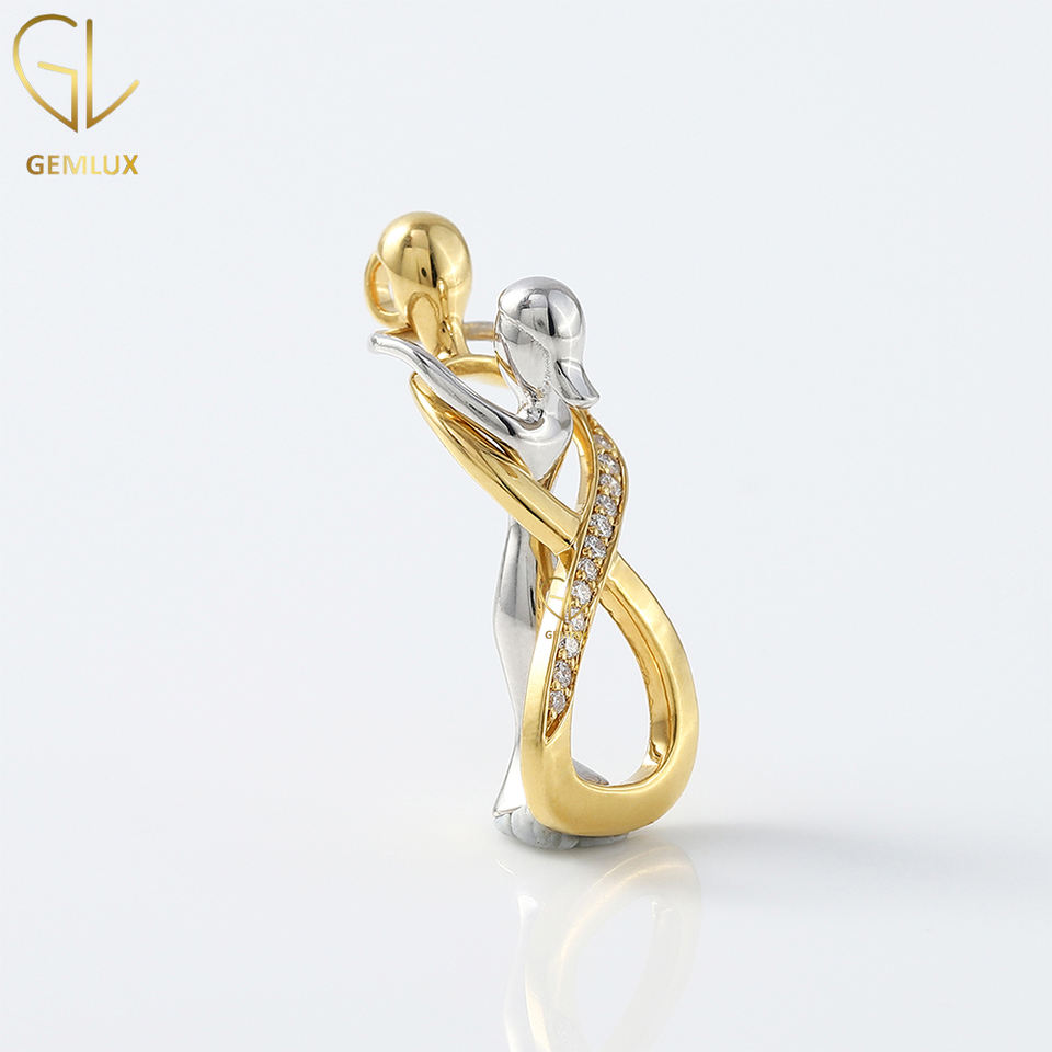 Best Selling Premium Quality 10k/14k/18k Gold Lab Grown Diamond Two Tone Trendy Couple Lover Hug Necklace Pendant