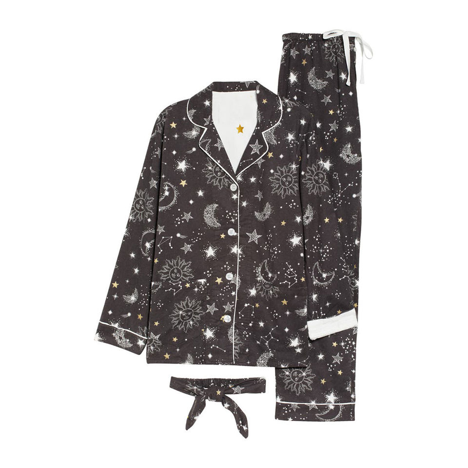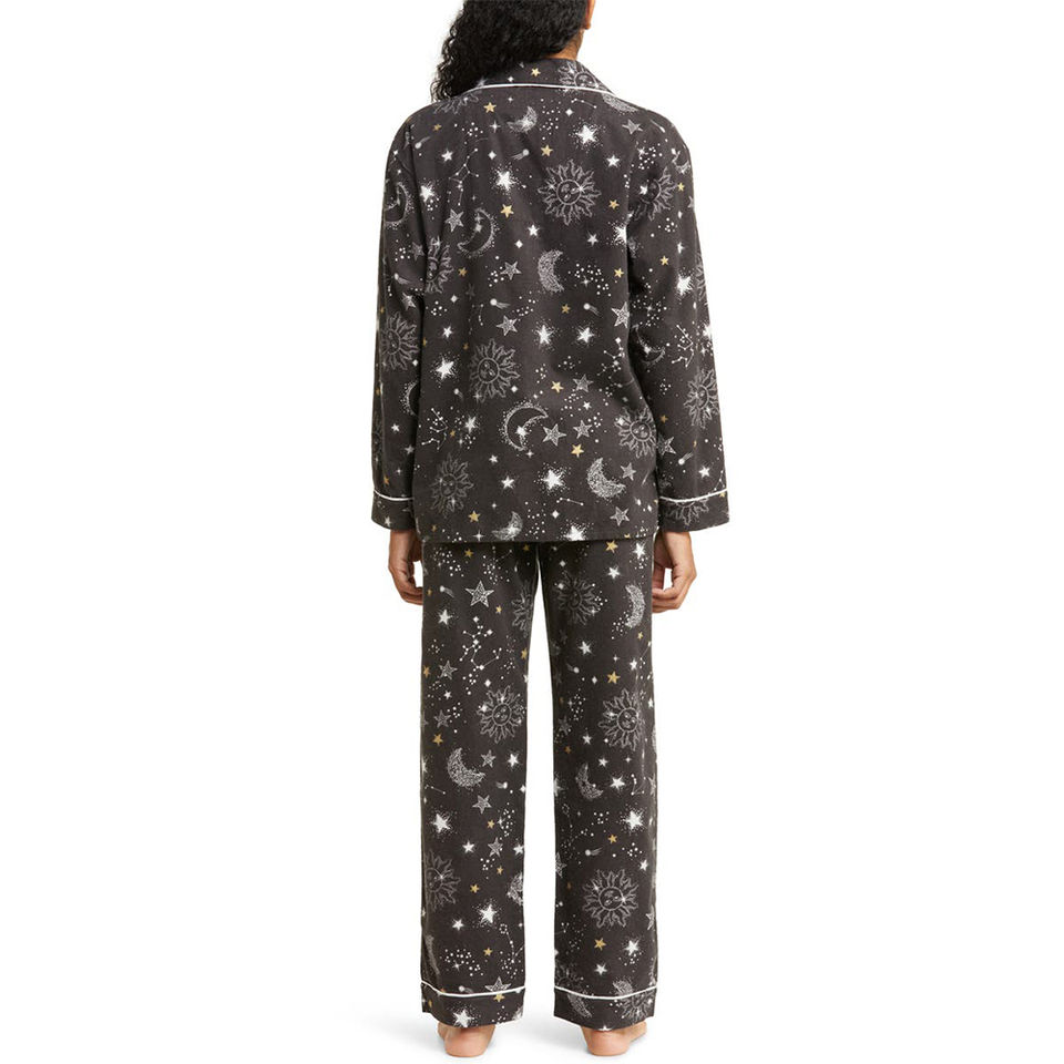 Best Selling Thermal Printed Polyester/Cotton Satin Women's Sleepwear Shirts Tops Pajama Sets Elastic Waist Breathable Front Low