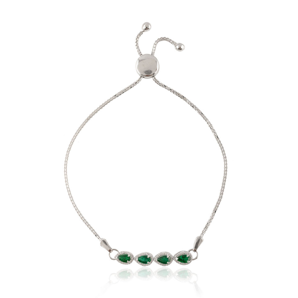 Best Selling Product 100% Authentic Natural Emerald and Diamond Chain Adjustable Bracelet 18k White Gold May Birthstone Jewelry