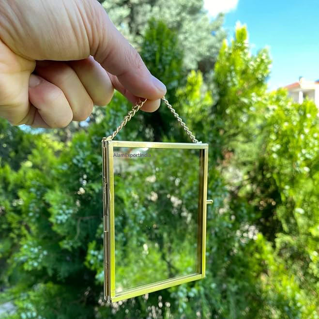 Best Selling Product Mini Photo Frame Clear Glass Brass Border Square Shape Hanging Photo Holder Wedding Pic Pressed Flower Deco