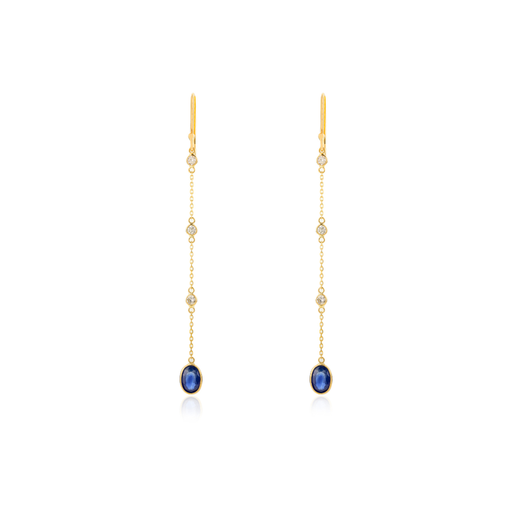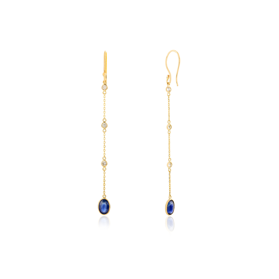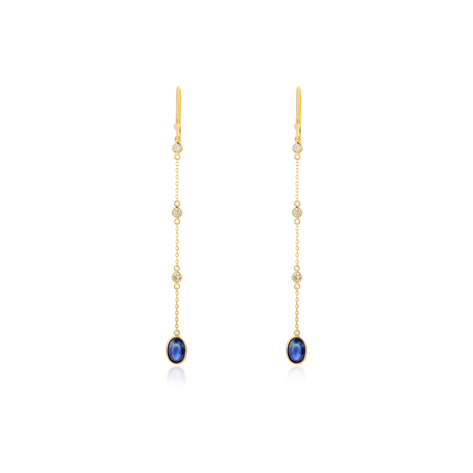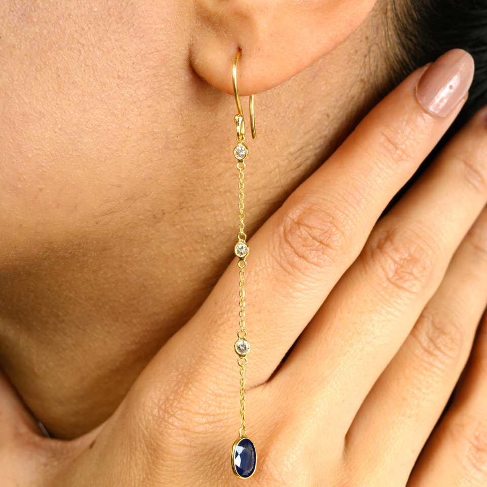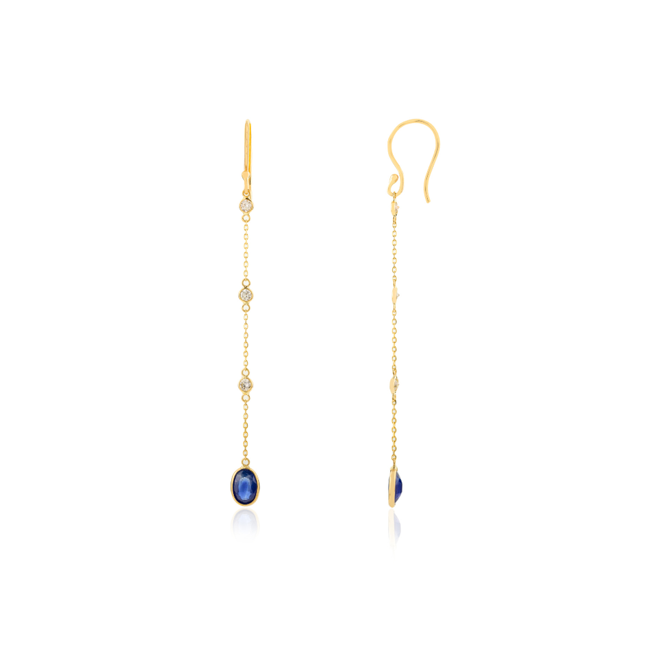 Best Selling Products Bulk Order Blue Sapphire & Diamond Long Statement Dangle Earrings Handmade Collection Jewelry Manufacturer