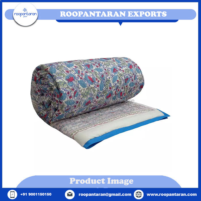 Best Selling Queen Quilt in Bush Flower Blue Jaipur Block Print Soft Organic Cotton Factory Outlet Best Price
