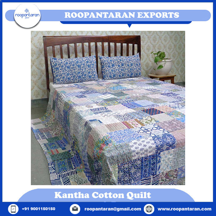 Best Selling Queen Size Organic Cotton Kantha Quilt Hand Block Printed Patchwork Direct Indian Manufacturer Sale Cheap Price