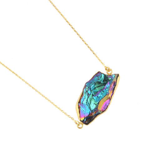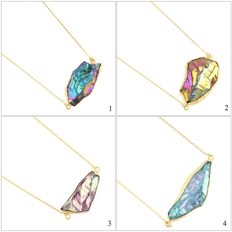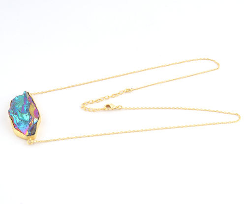 Best Selling Ravishing Gold Plated Link Chain Necklace Raw Aura Quartz Double Bail Texture Finish for Wedding Islam Gifts