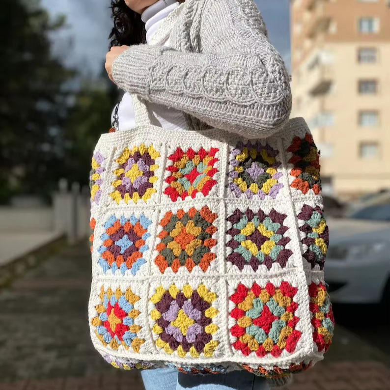 Best-Selling Retro Crochet Handmade Everyday Woven Cotton Lining Handbag Open Closure Type Shoulder Bag Fast Shipping Available