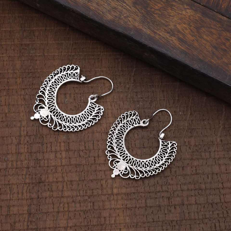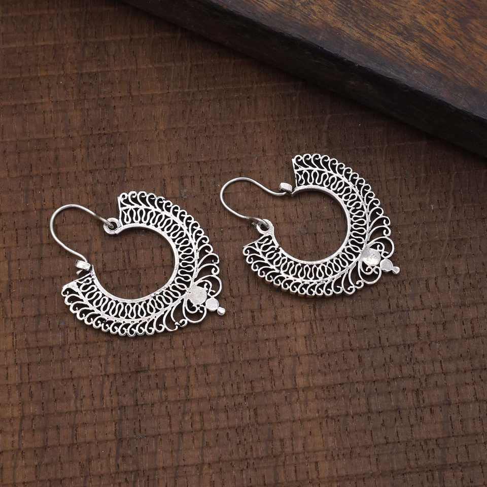 Best Selling Round Hoop Jewellery 925 Sterling Silver Fine Filigree Creole Earrings Women Girls Fashion Ethnic Trendy Geometric