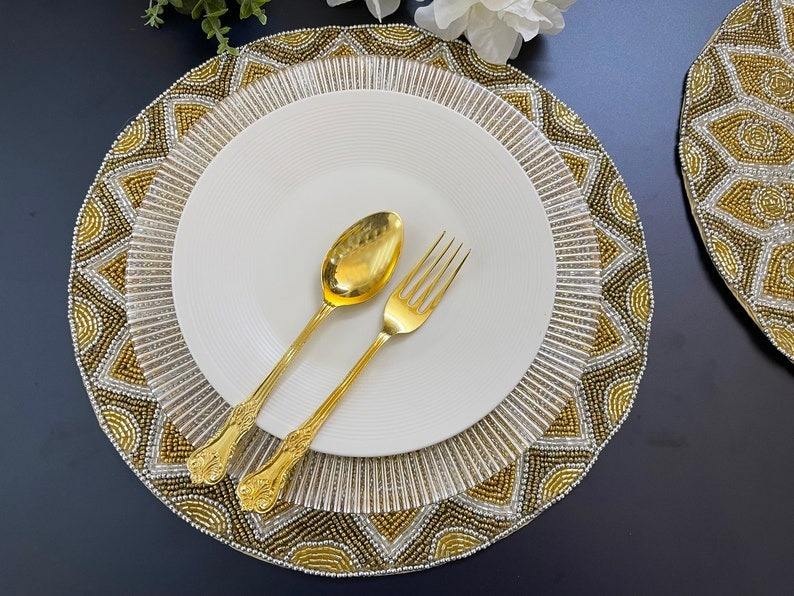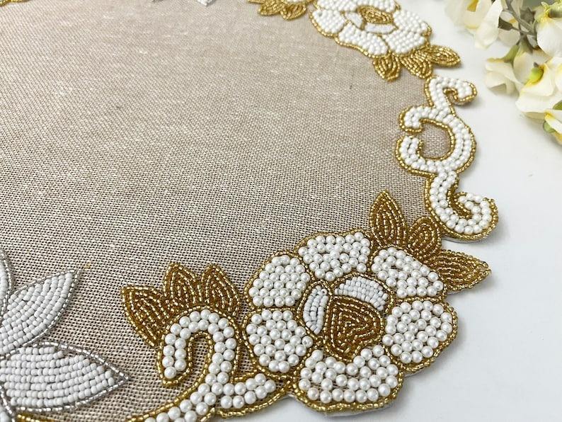 Best Selling Luxury Round Beaded Embroidery Placemat Coaster Pad for Home Wedding Dining Use