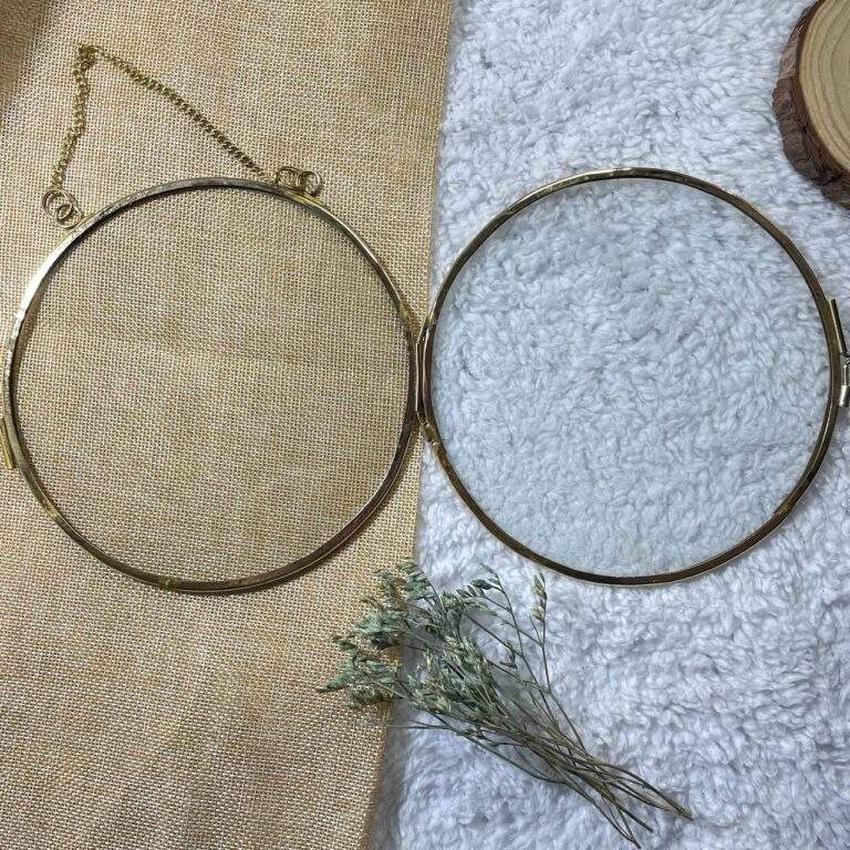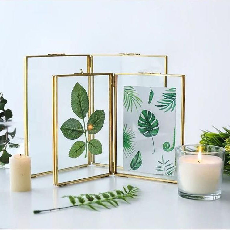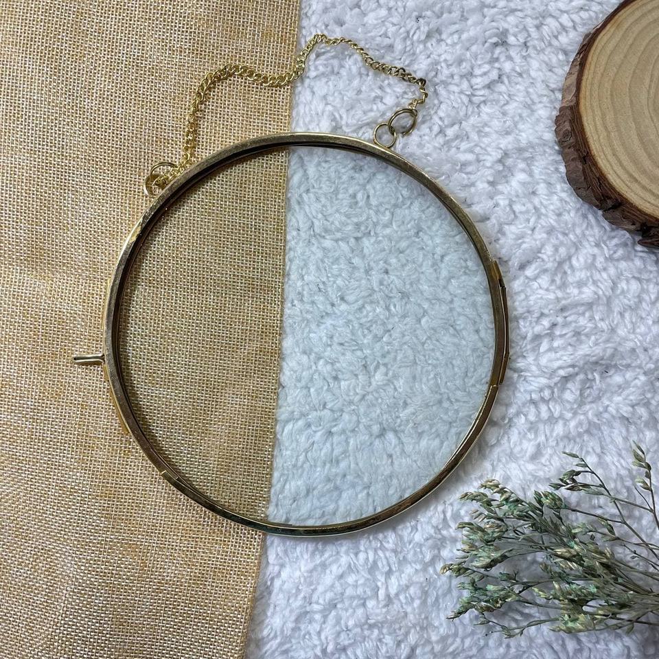 Best Selling Round Shape Brass Border Clear Glass Hanging Photo Frame for Wall Decorate Office & Home Living Room Decorations
