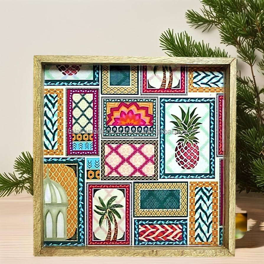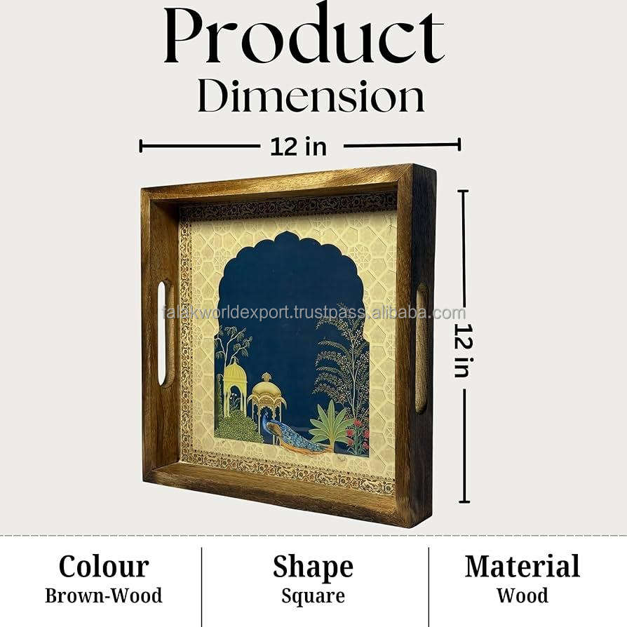 Best Selling Round Shape Wooden and Mother of Pearl Inlay Chocolate Serving Tray Arabic Style Serving Tray for Ramadan Gift FWE