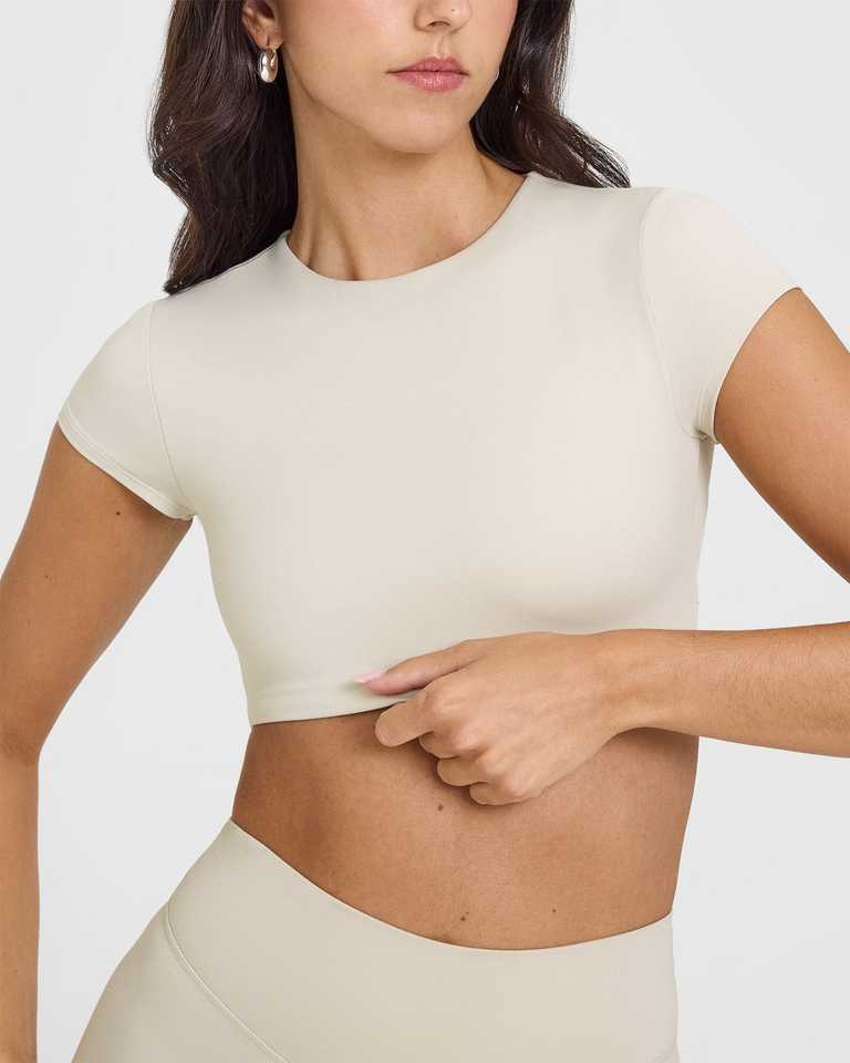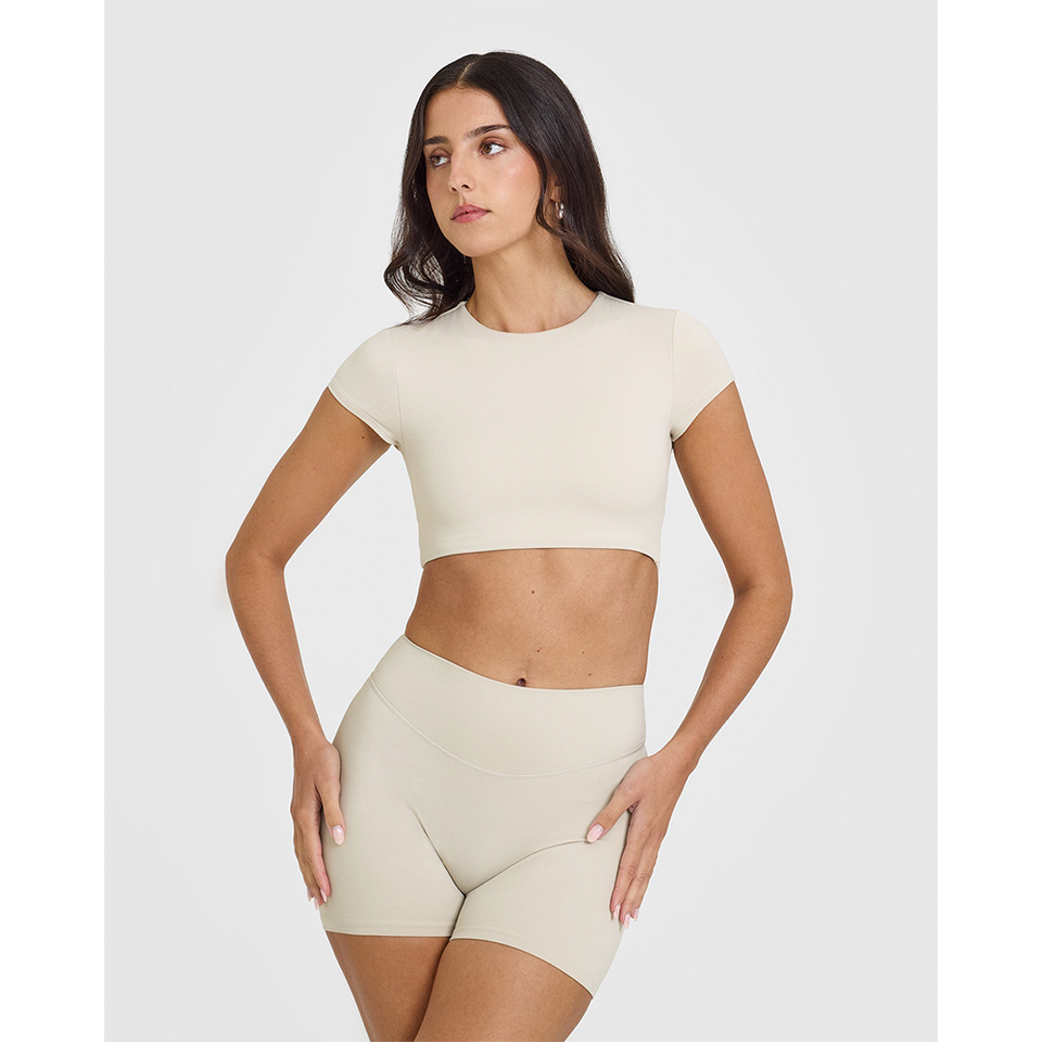 Best Selling Sand Women's Crop Top Breathable Super Soft And Stretchy Print Cotton Short Sleeve Workout Crop Top Tees for Women