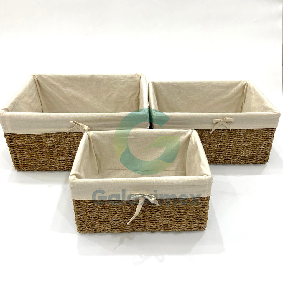 Best Selling Seagrass Woven Rectangular Storage Basket with Handles for Home Organization & Laundry Use