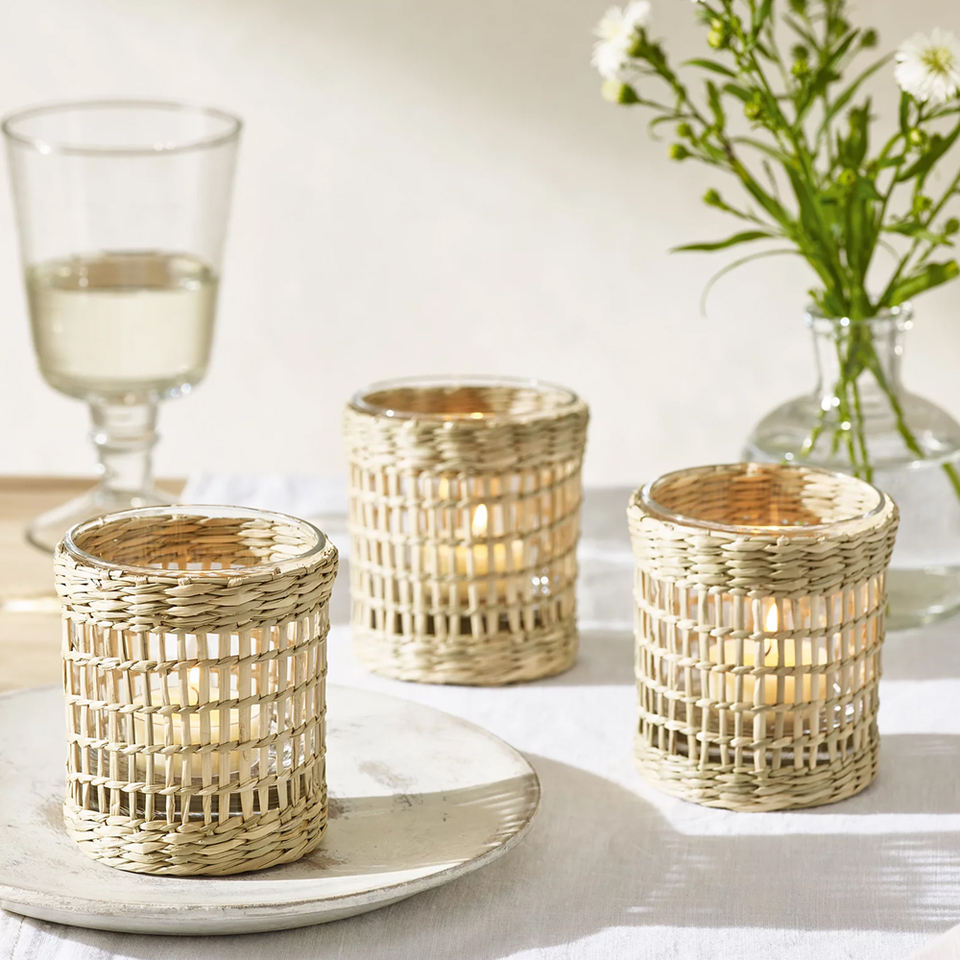 Best Selling Set of 3 Seagrass Candle/Tealight Holder High Quality Home Decor for Christmas and Valentine's Day