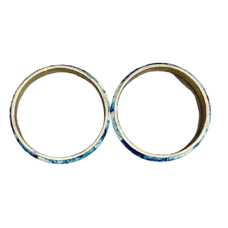 Best Selling Set of 2 Blue and White Marble Effect Brass Bangles High-Polish Slim Metal Bracelets Hand-Painted Enamel Style