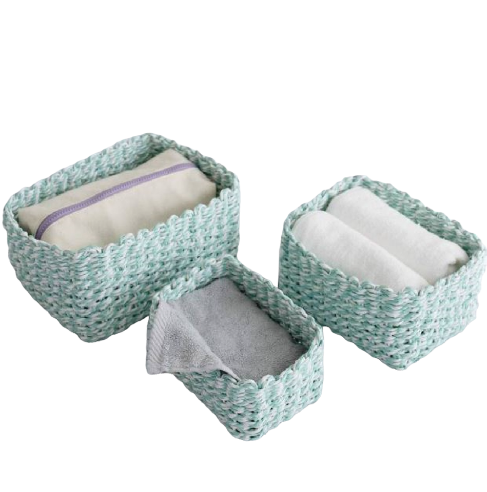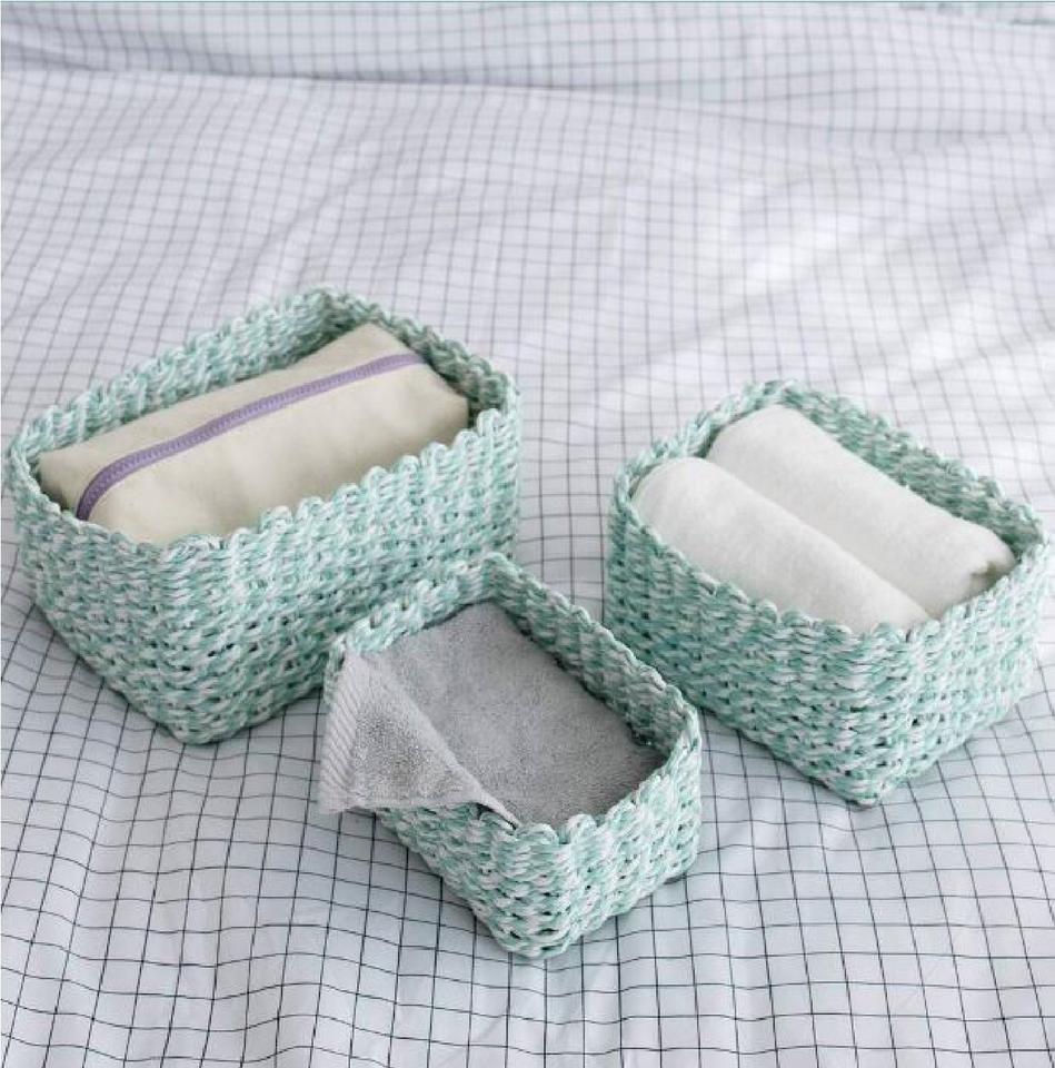 Best Selling Set of 3 Rattan Storage Baskets Rectangle Shape New Design Green Finished Perfect For Kitchenware Home Food Storage