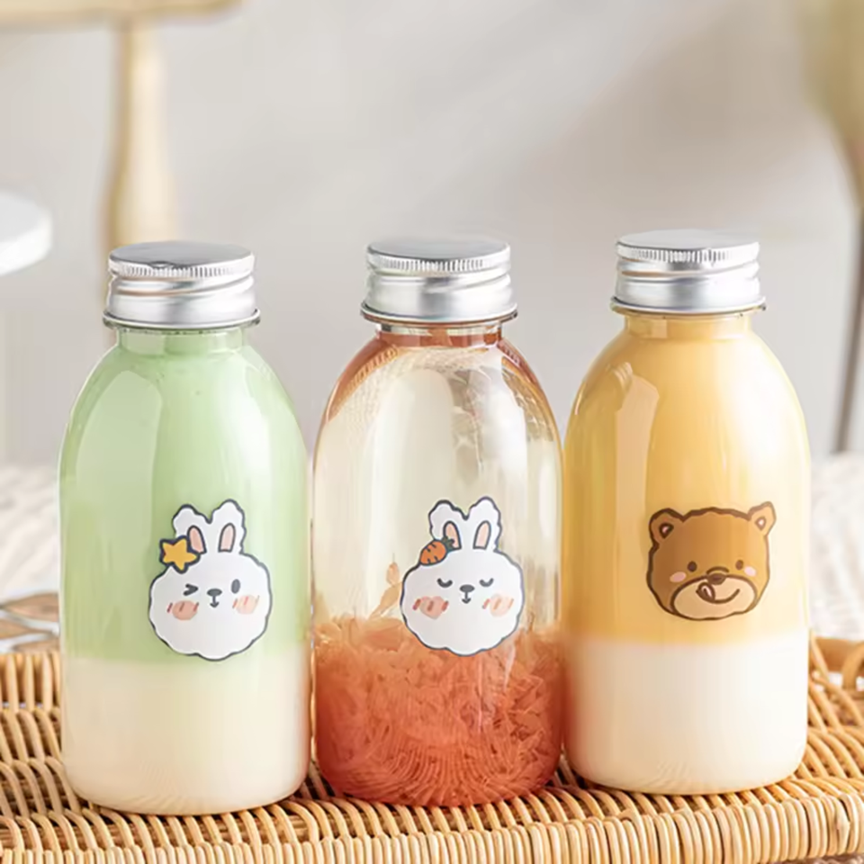 Best Selling Short Round Bottle High Quality PET Plastic Bottle with Aluminum Cap/ Straw Hole 270ml 380ml Size Available
