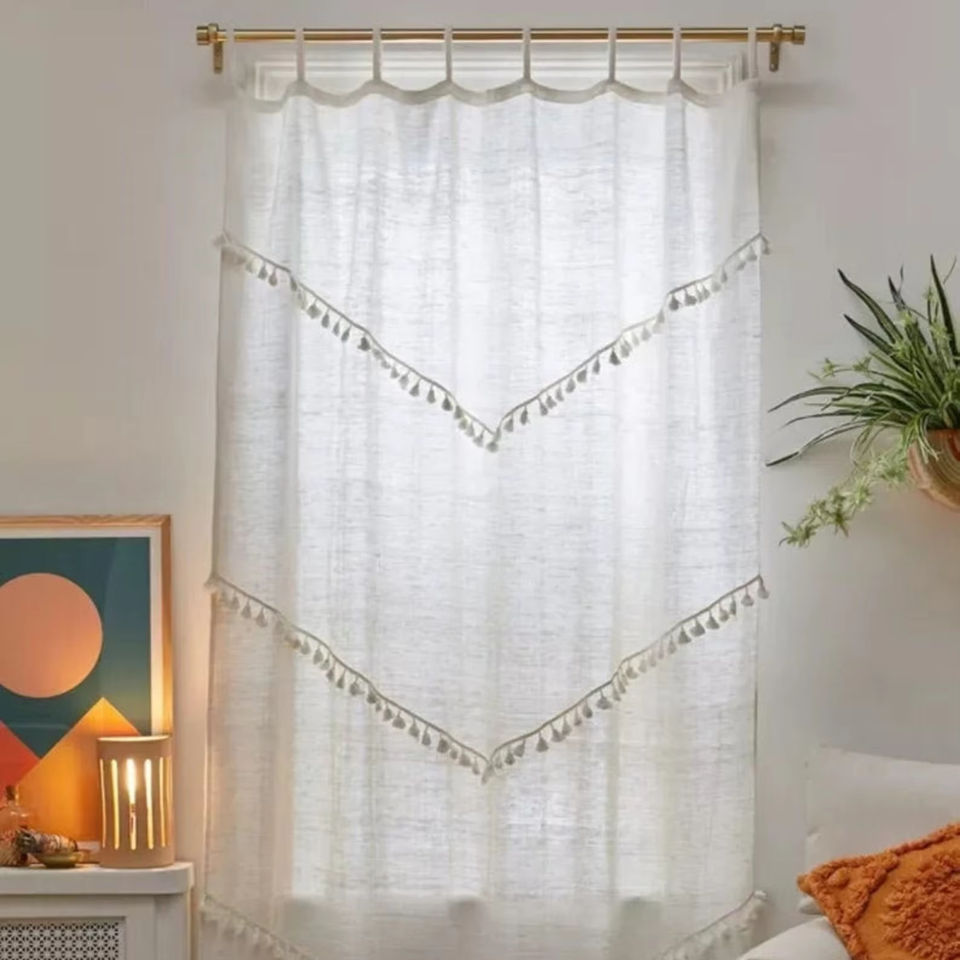 Best Selling Solid Cotton Tassel Curtains Beautiful Decorative New Style Curtain for Home Hotel Cafe Windows Door