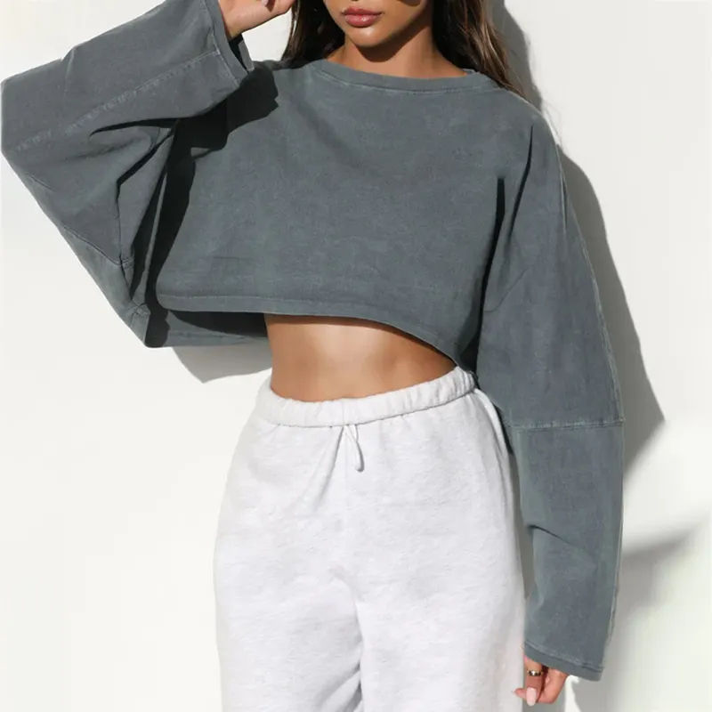 Best Selling Sporty Undershirts Neck Crop Top Sweatshirts Long Sleeved Knitted T-shirts Zipper Print Featuring Appliques