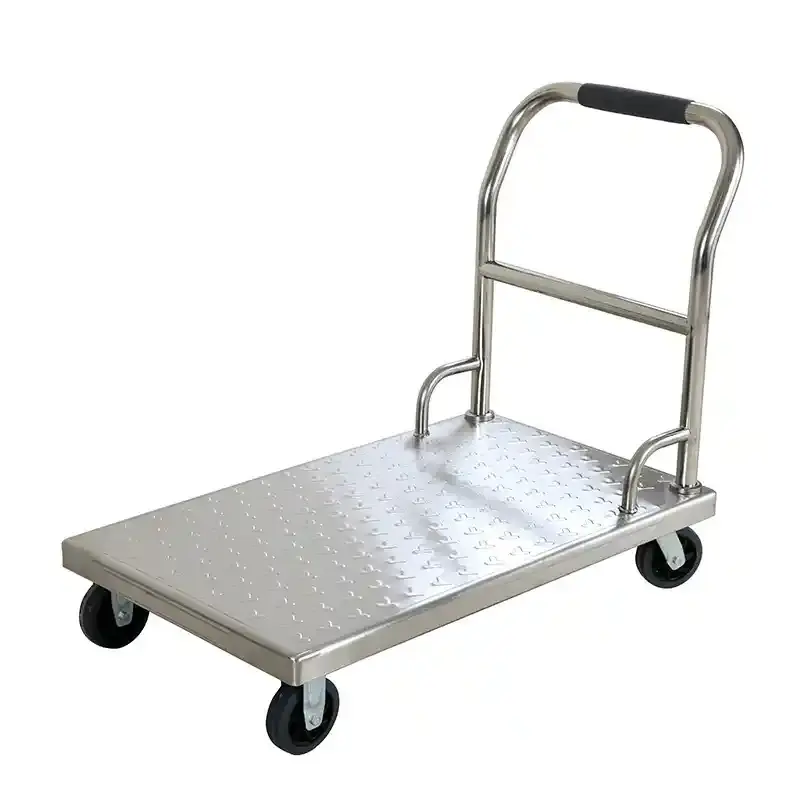 Best-Selling Stainless Steel 201 Flatbed Trolley Hand Cart with Customizable Size & Wheels for Hotel & Restaurant Supplies