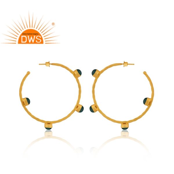 Best Selling Sterling Silver 18K Gold Plated Natural Green Onyx Gemstone Hoop Earring Demi Fine Jewelry Manufacturer