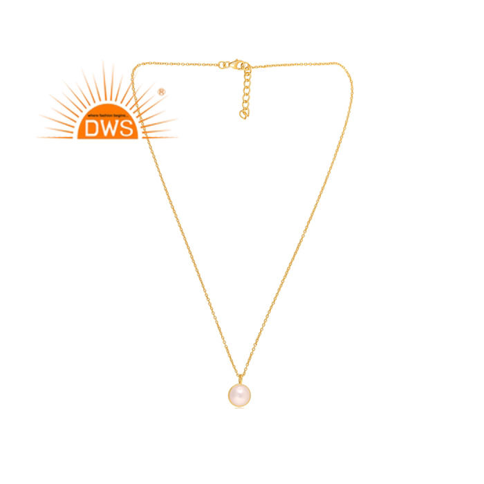 Best Selling Sterling Silver 18K Gold Plated Natural Pearl Pendant Necklace Demi Fine Jewelry Manufacturer