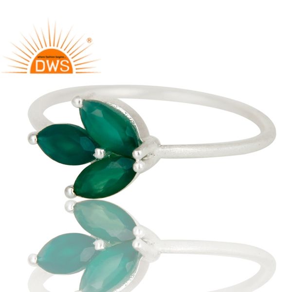 Best Selling Sterling Silver 18K Gold Plated Natural Green Onyx Gemstone Stackable Ring Custom Jewelry For Women Gift For Her