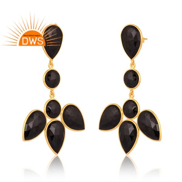 Handmade Sterling Silver 18K Gold Plated Natural Black Onyx Gemstone Dangle Earring Gold Vermeil Jewelry Manufacturer