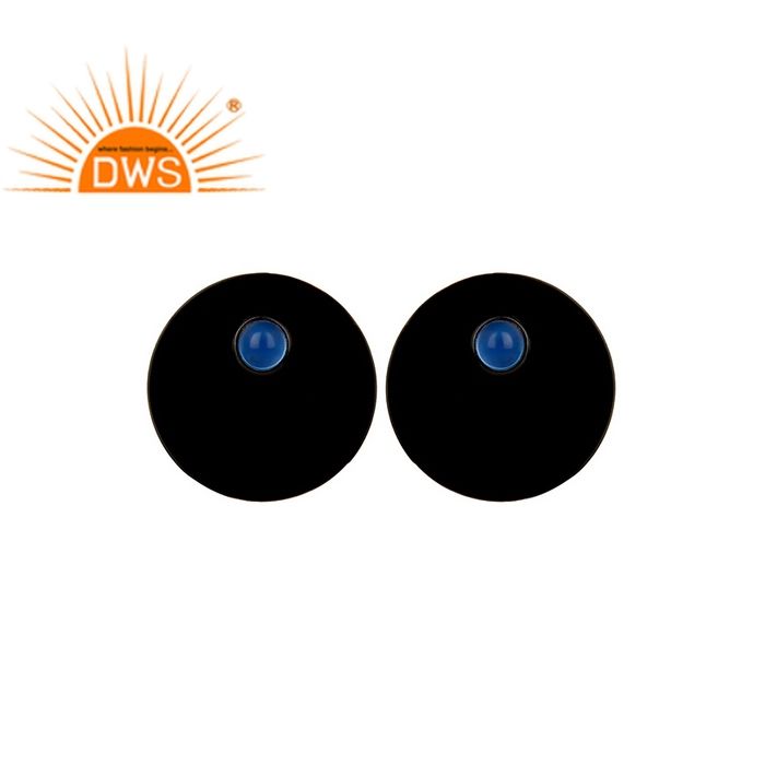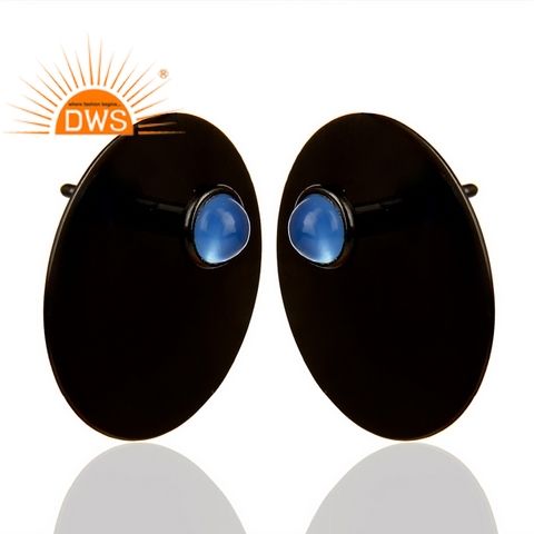 Best Selling Sterling Silver Natural Blue Chalcedony Gemstone Stud Earring Custom Jewelry Manufacturer