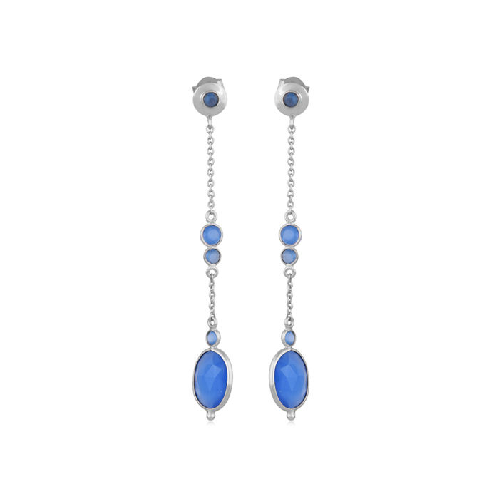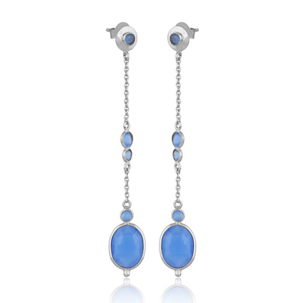 Best Selling Sterling Silver Natural Blue Chalcedony Gemstone Dangle Earring For Women Jewelry Manufacturer