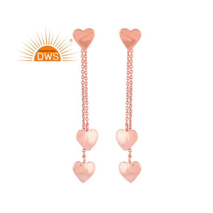 Best Selling Sterling Silver Rose Gold Plated Heart Charm Dangle Earring Silver Jewelry for Women Gift for Her