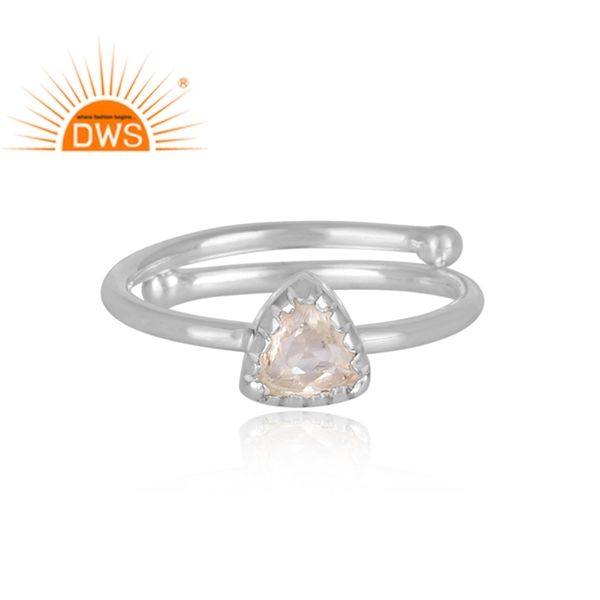 Best Selling Sterling Silver Triangular Crystal Quartz Set Fine 925 Silver Designer Ring Jewelry Manufacturer