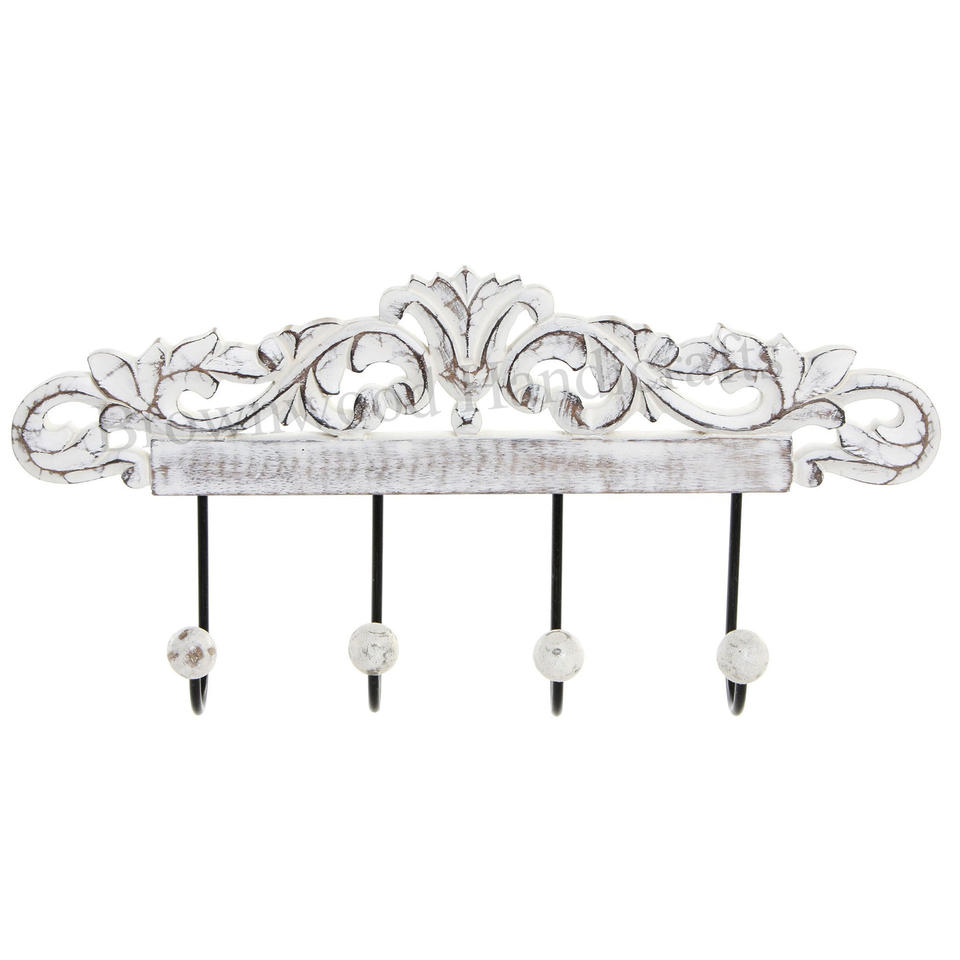 Best Selling Superior Quality Wall Mounted Hook Burnt White Antique Color 16 X 4 Inch Size MDF Hand Carved Wall Hook