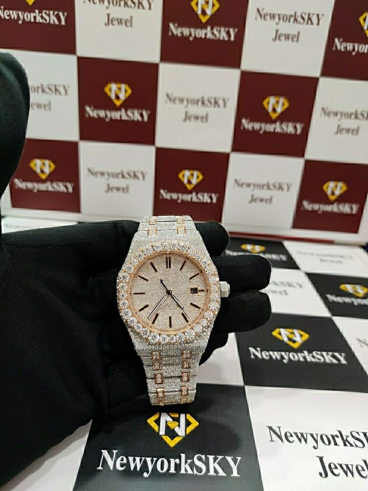 Best Selling Top Brand Luxury Bling Bust Down Full White Moissanite Diamond Micro Setting Wrist Watches at Wholesale Price