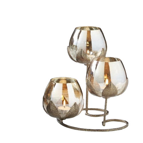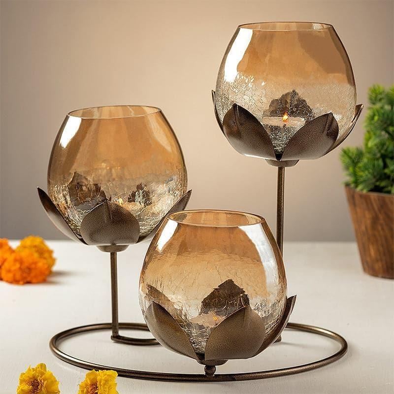 Best Selling Treanding Wind Light T Light Holder With Metal Base and Glass Body With Glass Pit