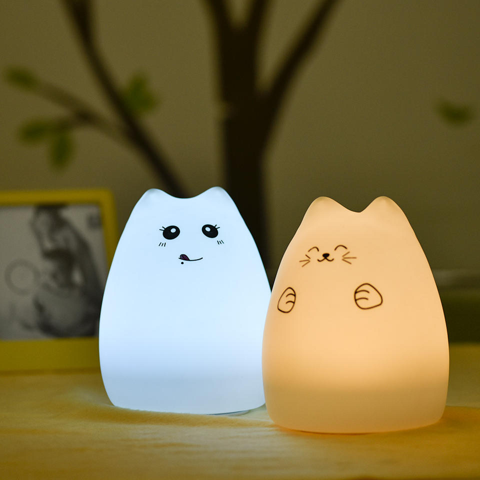 Best Selling USB Rechargeable LED Night Light Small Size Touch Control Colorful Kids Cat Design Made Silicone EMC Certified
