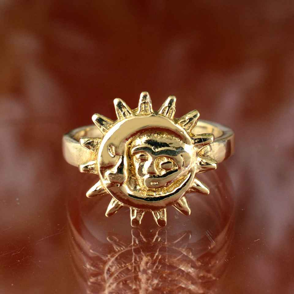 Best Selling Unique Geometric Sun and Moon Face Ring Celestial Ring Women Finger Jewelry 18k Gold Solid Brass Ring Women Fashion