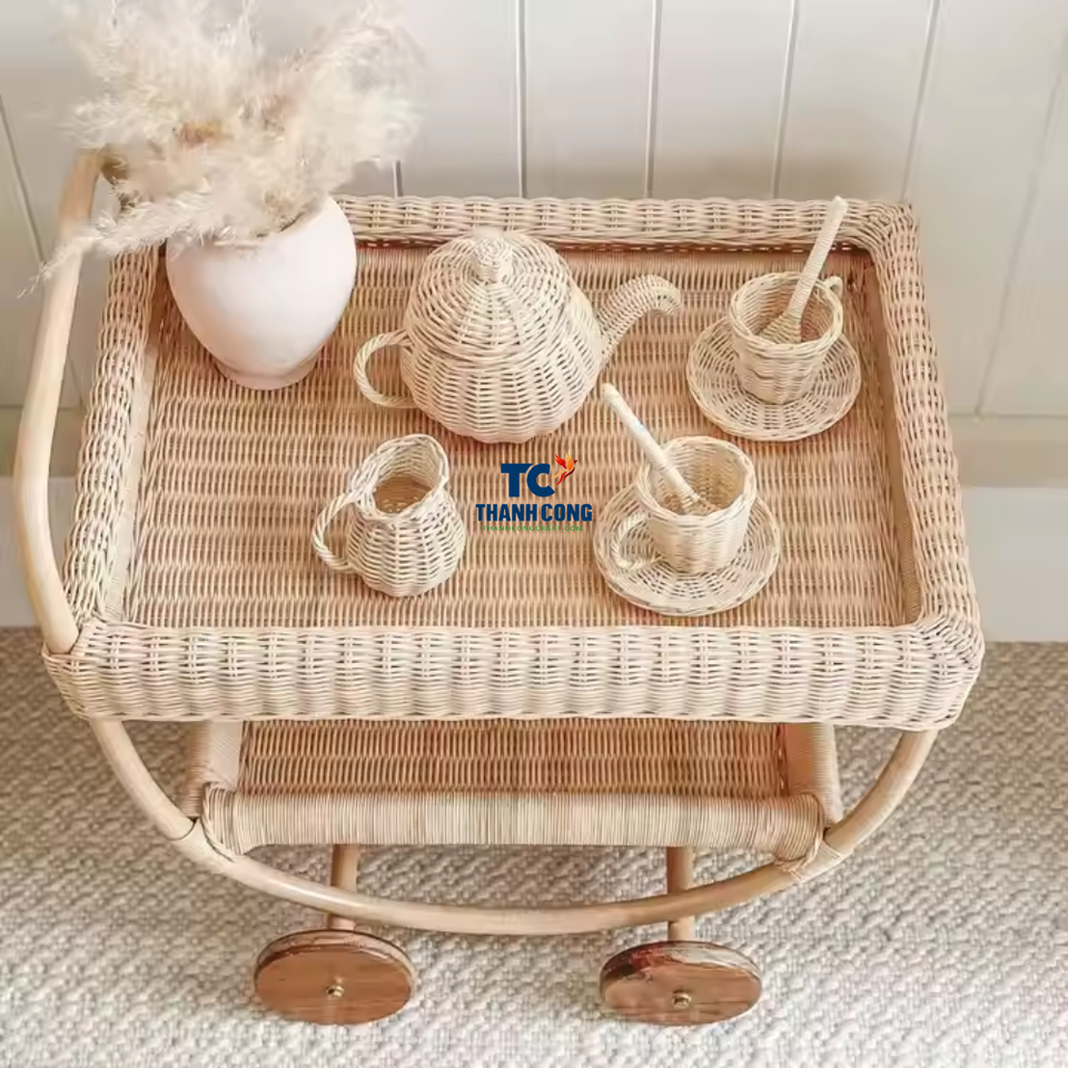 Best Selling Unisex Handwoven Rattan Toys Set Tea Pot Charming Collection for Children Aged 5 7 for Delightful Tea Cake Parties