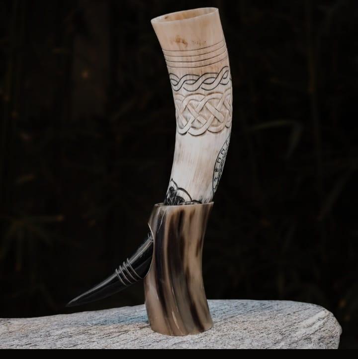 Wholesale Best-Selling Black Viking Ceramic Beer Mug with Golden Rim Handcrafted Horn Mug for Bars and Parties for Beer Lovers
