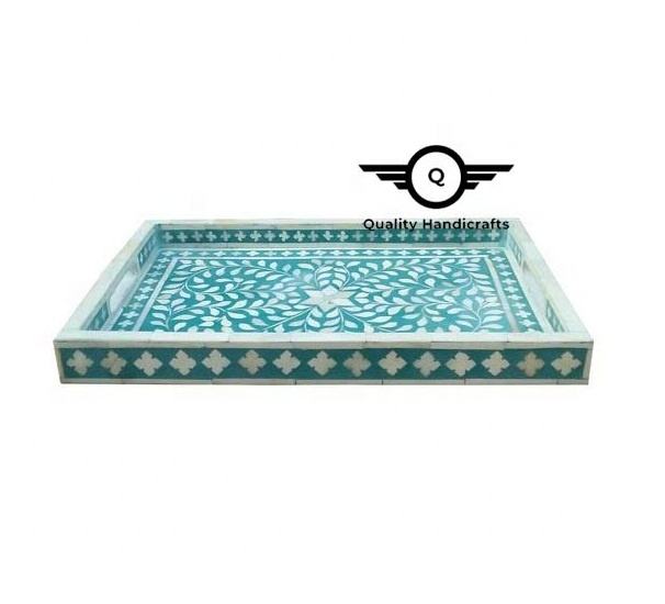 Best Selling Vintage Square Black Tray Handmade Bone Inlay Coffee Table Top for Kitchen Serving Drinks for Serving Guests