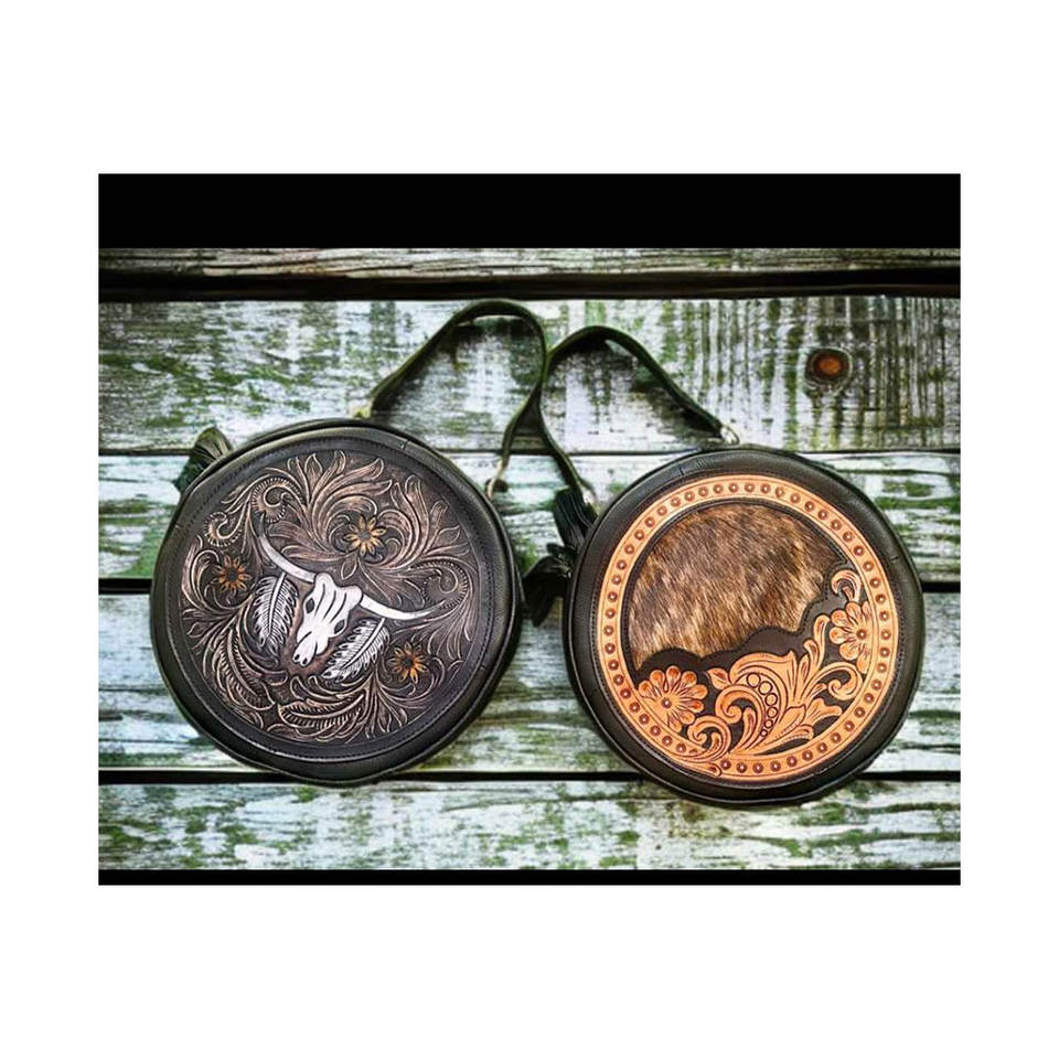 Best Selling Western Navajo Style Cowhide Leather Bag with Hand Tooled Strap Fringe Design Luxury Soft Handmade Shoulder Purse
