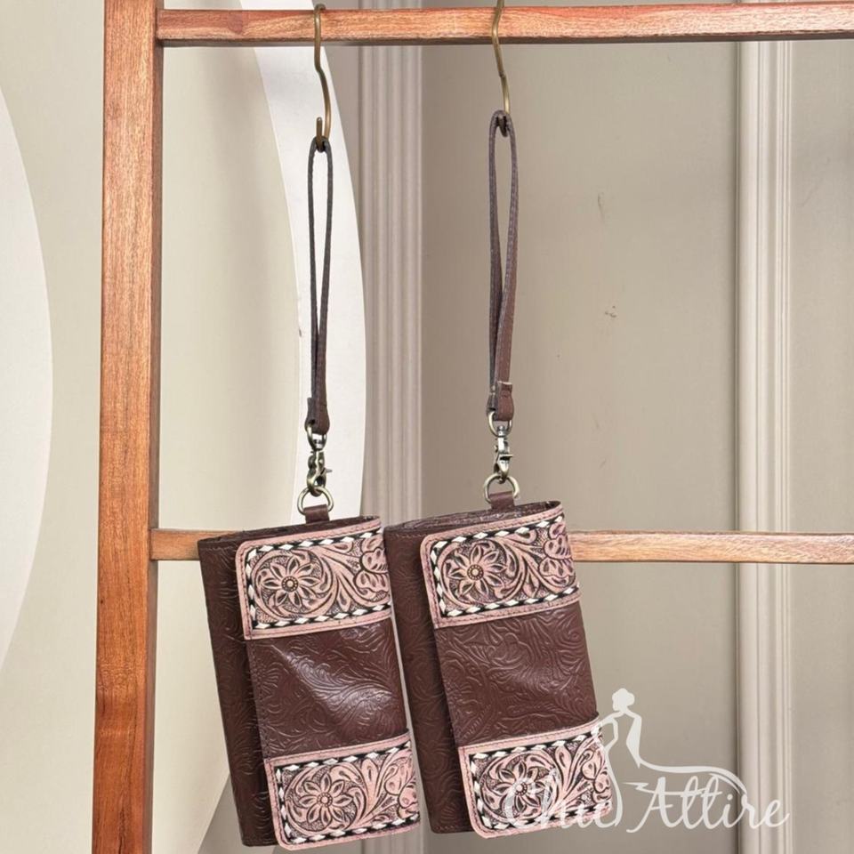 Western Hand Tooled Leather Wristlet Wallet
