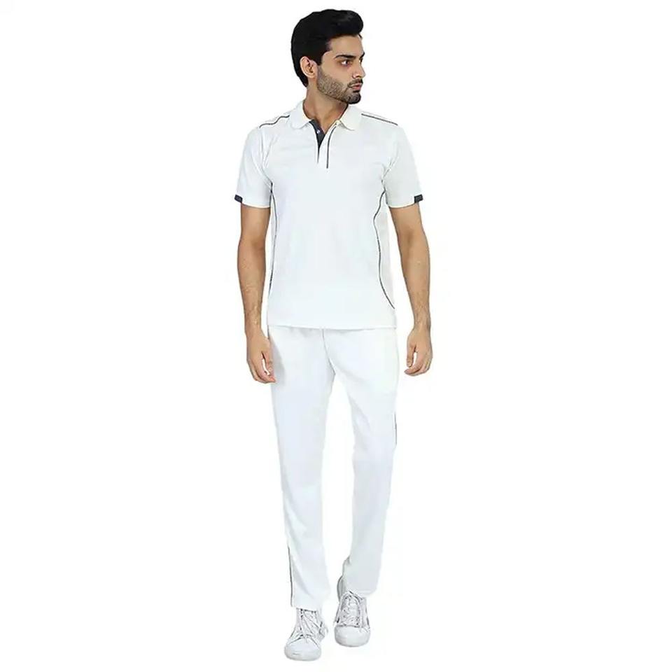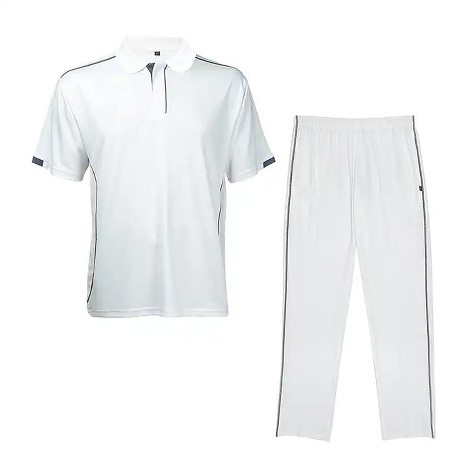 Best Selling White Cricket Uniform Set Custom Made Team Logo and Name Cricket Jersey Sublimated Sweat Moisture Cricket Kit
