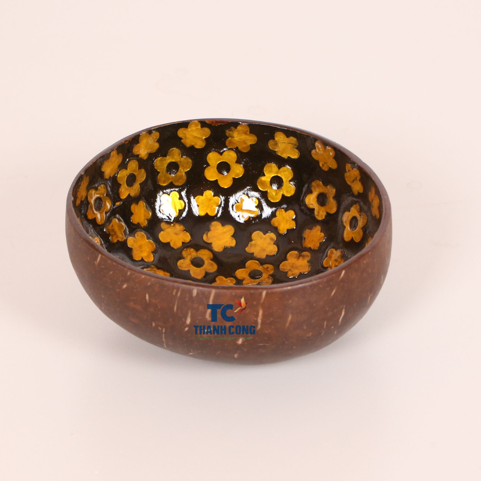 Best Selling Wholesale Coconut Bowls Natural Floral Inlaid Mother of Pearl Made in VietNam