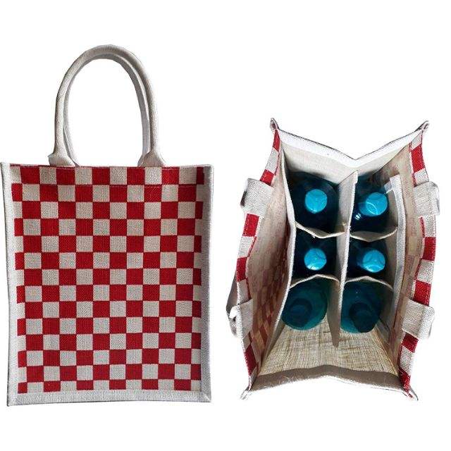 Best Selling Wholesale Jute Wine Bag Custom Logo Print Eco-Friendly Reusable Shopping Bag with Divided Bottles Holder