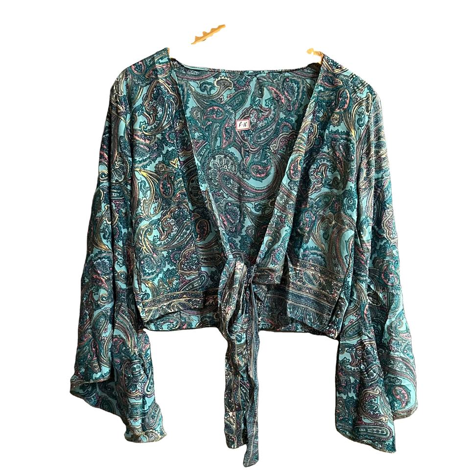 Best Selling Women Fashion Deep V Tie up Long Bell Sleeve Shirt Casual Pure Silk Wrap Tie Top Blouse Summer Wear Crop Top