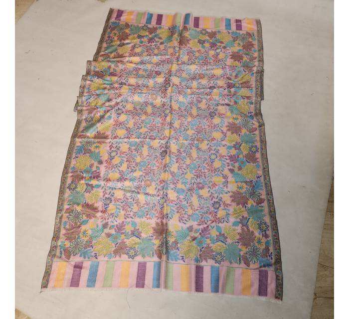 Best Selling Women's Pure Wool Crewel Embroidery Hand-Twisted Designer Knotted Winter Scarf Kashmiri Pashmina Style Shawl