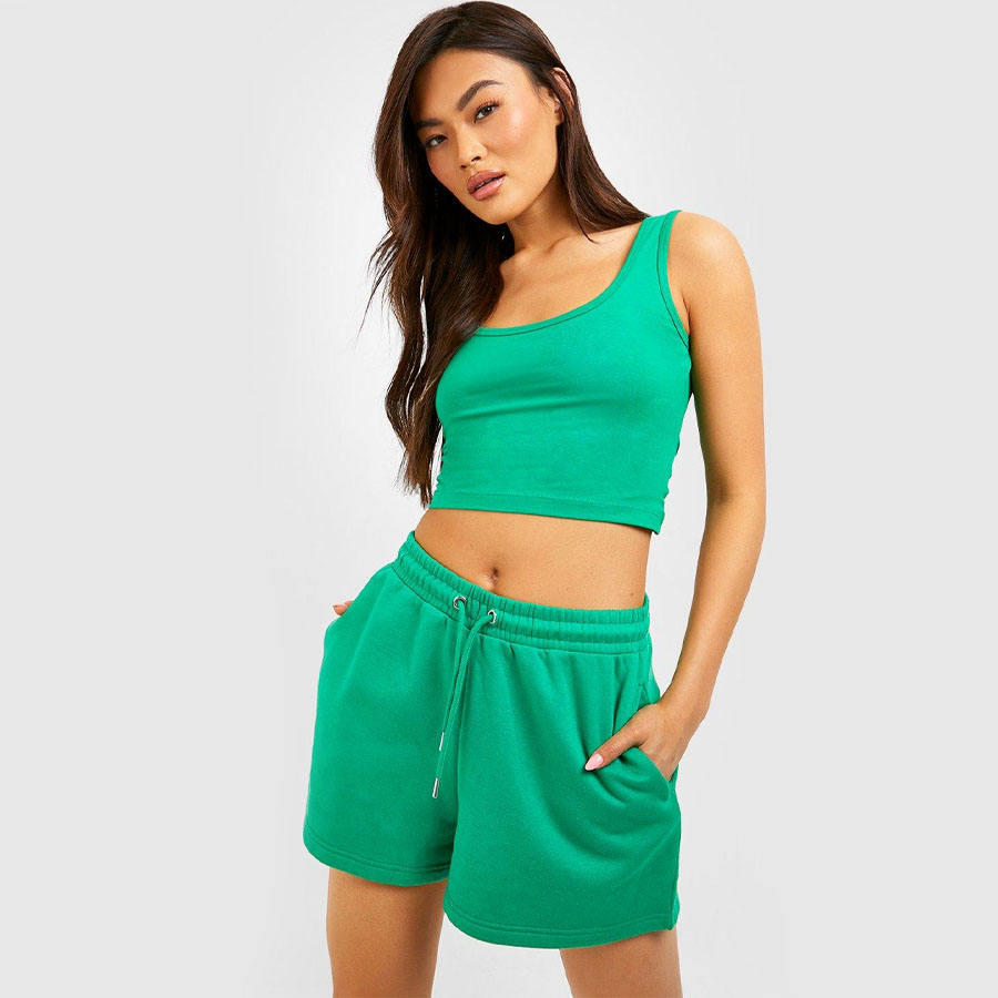 Best Selling Women's Sea Green Summer Sweat Shorts Customized Terry Fabric with Drawstrings and Side Pockets on Sale