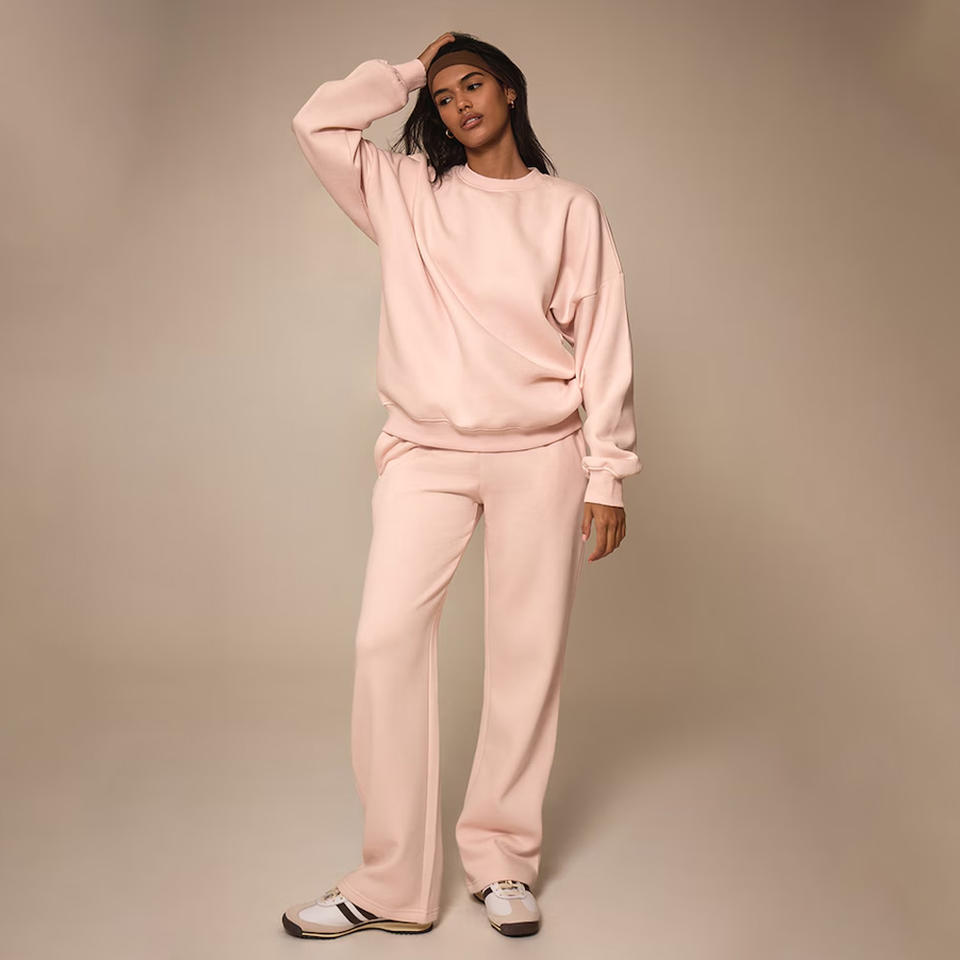 Best-Selling Women's Winter Tracksuits 100% Cotton Low MOQ Fashionable Solid Pattern Casual Long Crop Tops Set